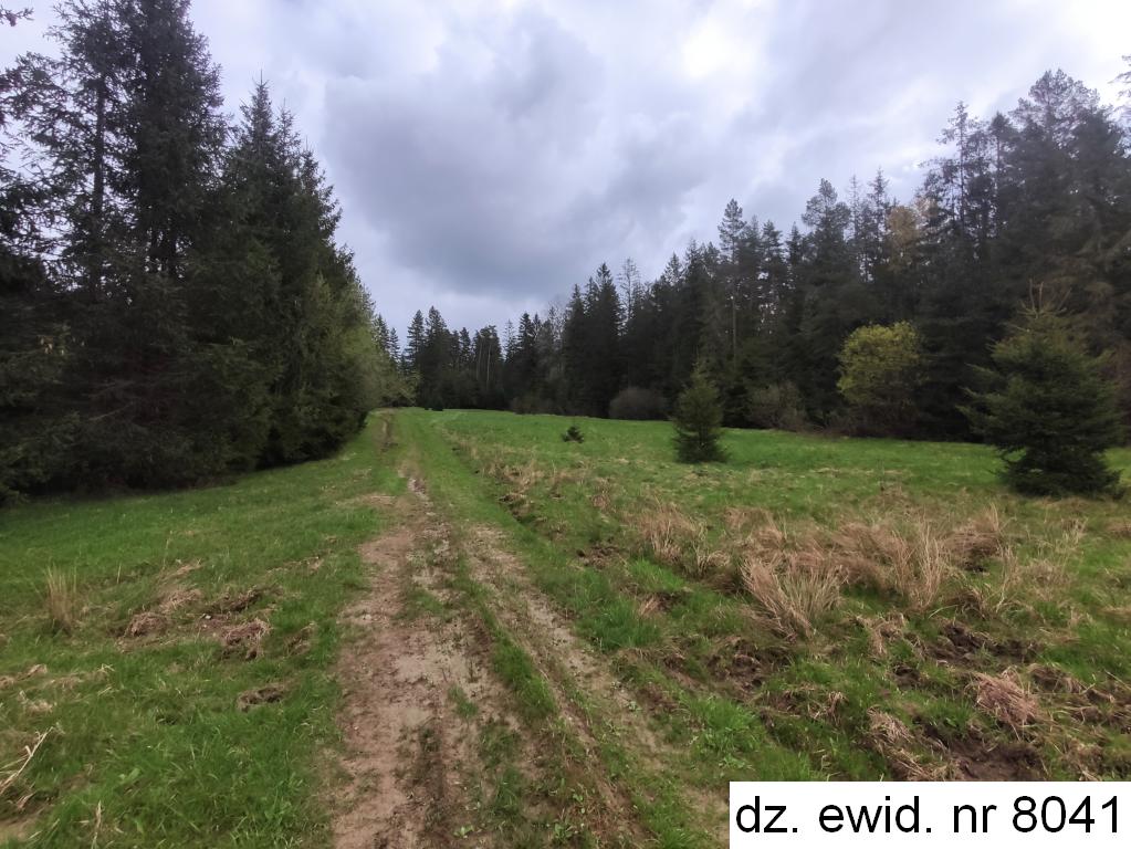 Działka ewidencyjna nr 8041 o powierzchni 0,1059 ha, zgodnie z danymi ewidencji gruntów i budynków użytkowana jest jako las klasy IV i łąka trwała klasy V. Działka posiada kształt czworoboku – długość ok. 35,5 m – 40 m, szerokość ok. 27,5 m. Teren działki lekko nachylony jest w kierunku zachodnim. Działka jest niezabudowana, częściowo porośnięta roślinnością trawiastą i częściowo zadrzewiona. Wzdłuż północnej granicy działki przebiega droga gruntowa. Bezpośrednie otoczenie działki stanowią tereny rolne i leśne. Działka jest nieuzbrojona. Dojazd do działki obywa się drogą częściowo polną i częściowo gruntową, biegnącą po działkach ewidencyjnych nr 8038 i 8054, które zgodnie z danymi ewidencji gruntów i budynków stanowią własność Gminy Lipnica Wielka.