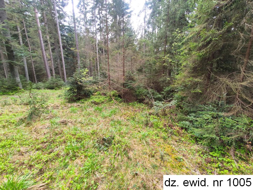 Działka ewidencyjna nr 10105 o powierzchni 0,0254 ha zgodnie z danymi ewidencji gruntów i budynków użytkowana jest jako las klasy IV. Działka posiada kształt czworoboku – długość ok. 43,5 m – 47 m, szerokość ok. 5 m – 8 m. Teren działki nachylony jest w kierunku zachodnim. Działka stanowi las, w którym dominującym gatunkiem jest świerk w wieku ok. 65 lat (50%), oraz w wieku ok. 45 lat (30%). Ponadto występuje jodła w wieku ok. 45 lat (10%) oraz w wieku ok. 85 lat (10%). Miejscowo występuje sosna w wieku ok. 65 lat. Zadrzewienie na poziomie 0,6, bonitacja II klasy. Dane o drzewostanie pozyskano z portalu internetowego https://www.bdl.lasy.gov.pl/portal/mapy#. Bezpośrednie otoczenie działki stanowi las. Brak prawnie uregulowanego dojazdu do działki. Dojazd fizyczny obywa się drogami leśnymi.