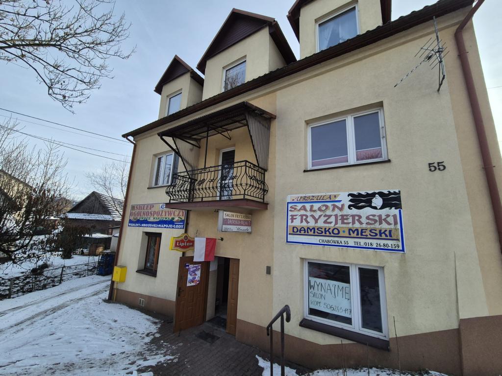 Budynek mieszkalno - usługowy nr 55 położony w Chabówce, to obiekt wolnostojący, murowany, składający się z parteru, piętra i poddasza, podpiwniczony. W budynku zostało wydzielonych siedem lokali. Na parterze budynku znajduje się obecnie sklep spożywczo-przemysłowy. Powierzchnia zabudowy budynku pomierzona z mapy poglądowej na stronie internetowej https://nowotarski.geoportal2.pl/map wynosi ok. 142 m². Stan techniczny budynku oraz standard wykończenia budynku określono jako przeciętny. Budynek gospodarczy posiada powierzchnię zabudowy ok. 42 m² (powierzchnia pomierzona została z mapy poglądowej na stronie internetowej https://nowotarski.geoportal2.pl/map). Jest to obiekt dwukondygnacyjny, murowany. W budynku zlokalizowane są komórki lokatorskie, które przynależą do lokali. Stan techniczny budynku oraz standard wykończenia budynku określono jako niski.